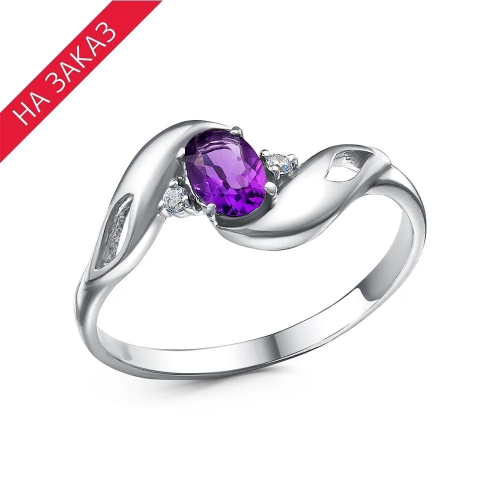 Аметист (полудрагоценный камень) 0,4ct 6х4мм 1шт; Фианит (недраг. камень) Круг 1,5мм 2шт