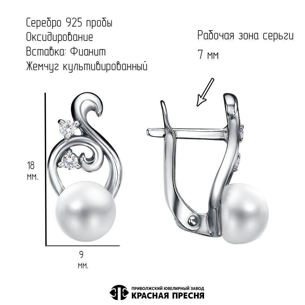 Культивир. жемчуг Круг 7,5мм 2шт; Фианит (недраг. камень) Круг 2.0мм 4шт