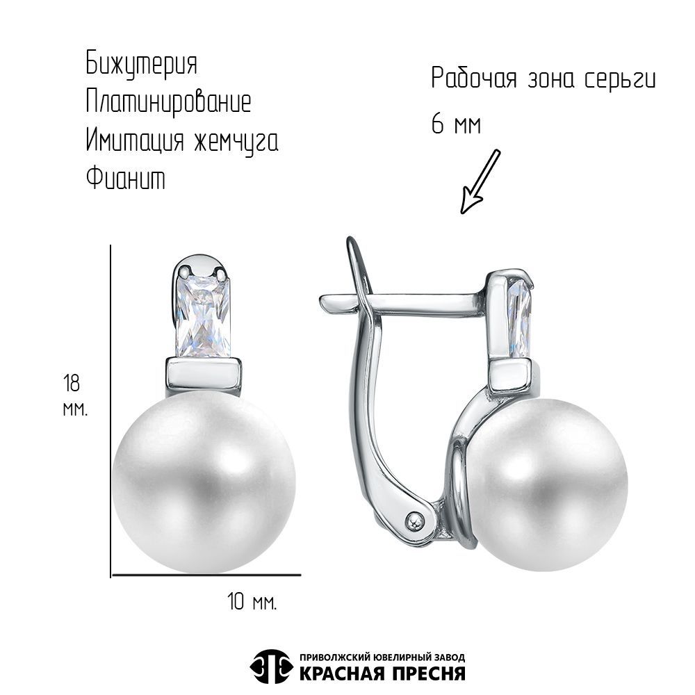 Фианит (недраг. камень) Прямоугольник 5х3мм 2шт; Имитация жемчуга Шар d10мм 2шт