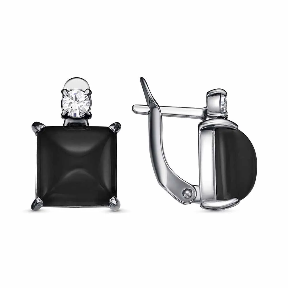 Иск. агат черный Квадрат 10х10х5мм 2шт; Фианит (недрагоценный камень) Круг 3.5мм 2шт